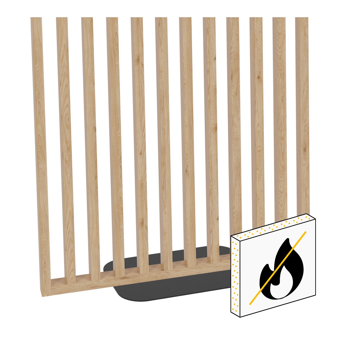 Lamellenwand aus schwer entflammbaren NRO-Lamellen auf Fuß – nach Maß