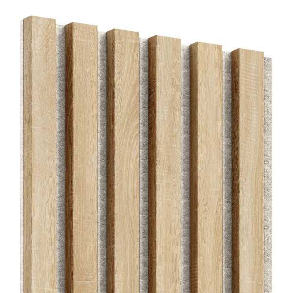 Acoustic wall panels are a fashionable and practical way to decorate your interior! Thanks to 8mm thick felt and vertical slats, the panels perfectly absorb sound waves, eliminating reverberation in the room. In addition to their acoustic function, wooden panels also serve as a fashionable and modern decoration for walls and ceilings in any interior. The acoustic slat panels come in several different decors mounted on black, gray or beige felt. The felt acoustic panels also come in the form of 3D acoustic panels in a square shape. Check out the available variations!
