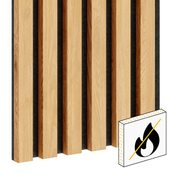 Lameo fireproof panels also have acoustic properties! Thanks to the felt surface, and the spaces between the lamellas, the product significantly affects the acoustics of the facility space, suppressing echoes and reverberations.
