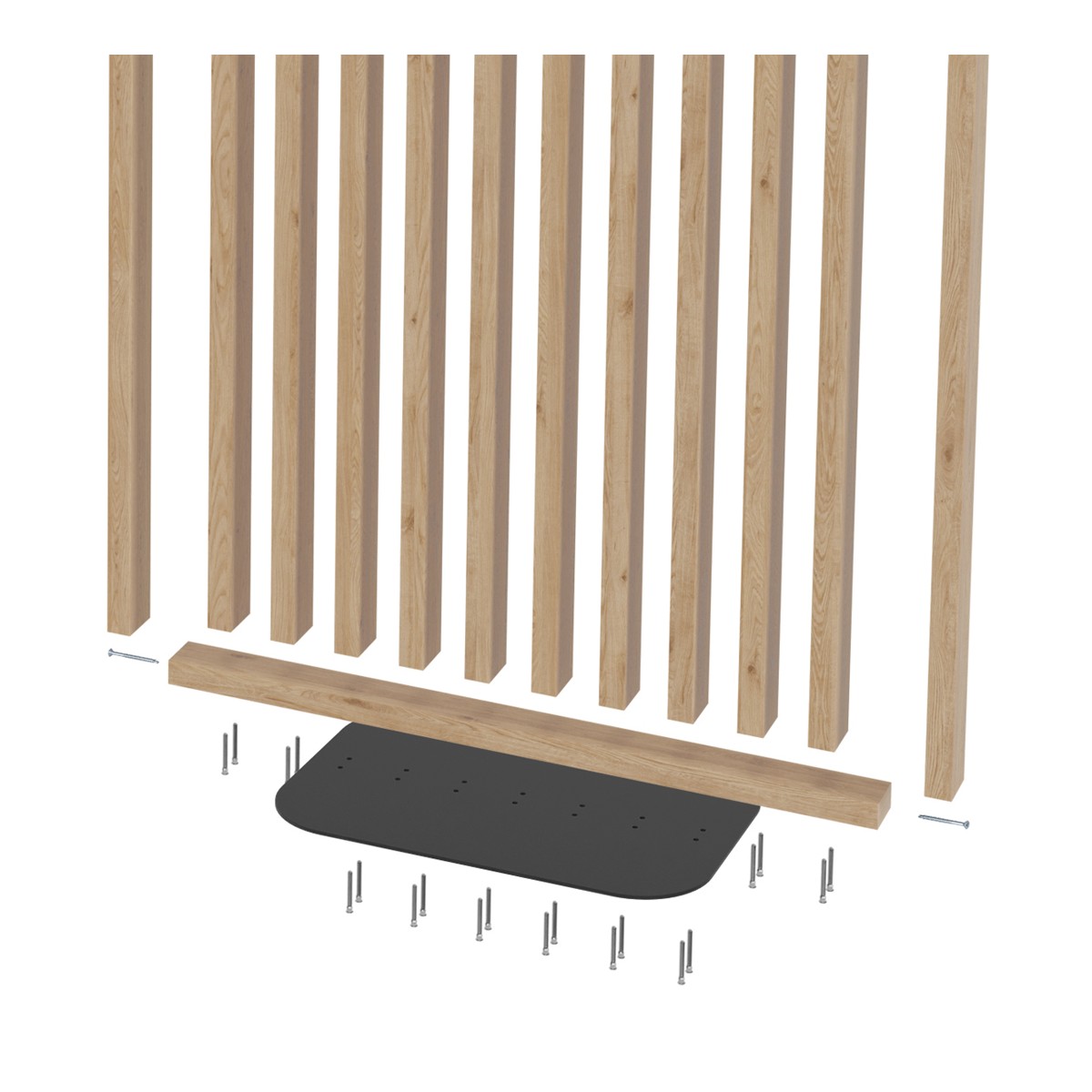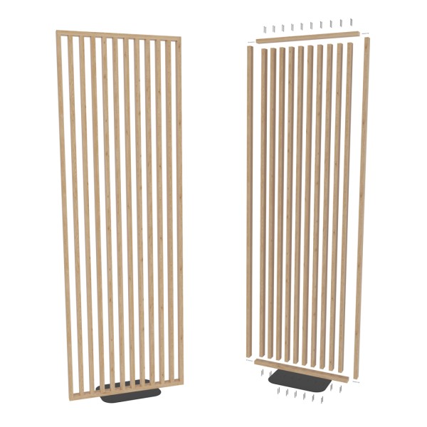 The set includes all the components needed to build the wall: vertical slats, a steel base, connecting elements, and clear instructions. Assembly is quick and easy, even if it's your first time!