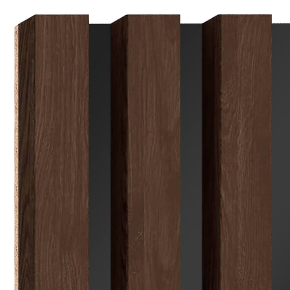 Acoustic wall panels are a fashionable and practical way to decorate your interior! Thanks to 3mm HDF board and vertical slats, the panels perfectly absorb sound waves, eliminating reverberation in the room. In addition to their acoustic function, wooden panels also serve as a fashionable and modern decoration for walls and ceilings in any interior. The acoustic slat panels come in several different decors mounted on a black HDF panel made of durable, lightweight board. Check out the available variations!
