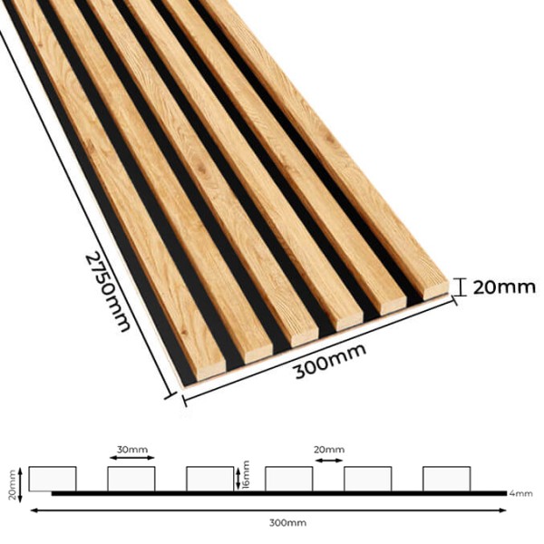 Acoustic wall panels are a fashionable and practical way to decorate interiors! Thanks to the 4mm thick oak HDF board and vertical laths, the panels perfectly absorb sound waves eliminating reverberation in the room. In addition to acoustic functions, the panels also serve as a fashionable and modern decoration for walls and ceilings in any interior. The wall panels come in 15 different decors mounted on an oak, black or white panel made of durable and lightweight HDF board. Check out the available fin variant on the oak panel!