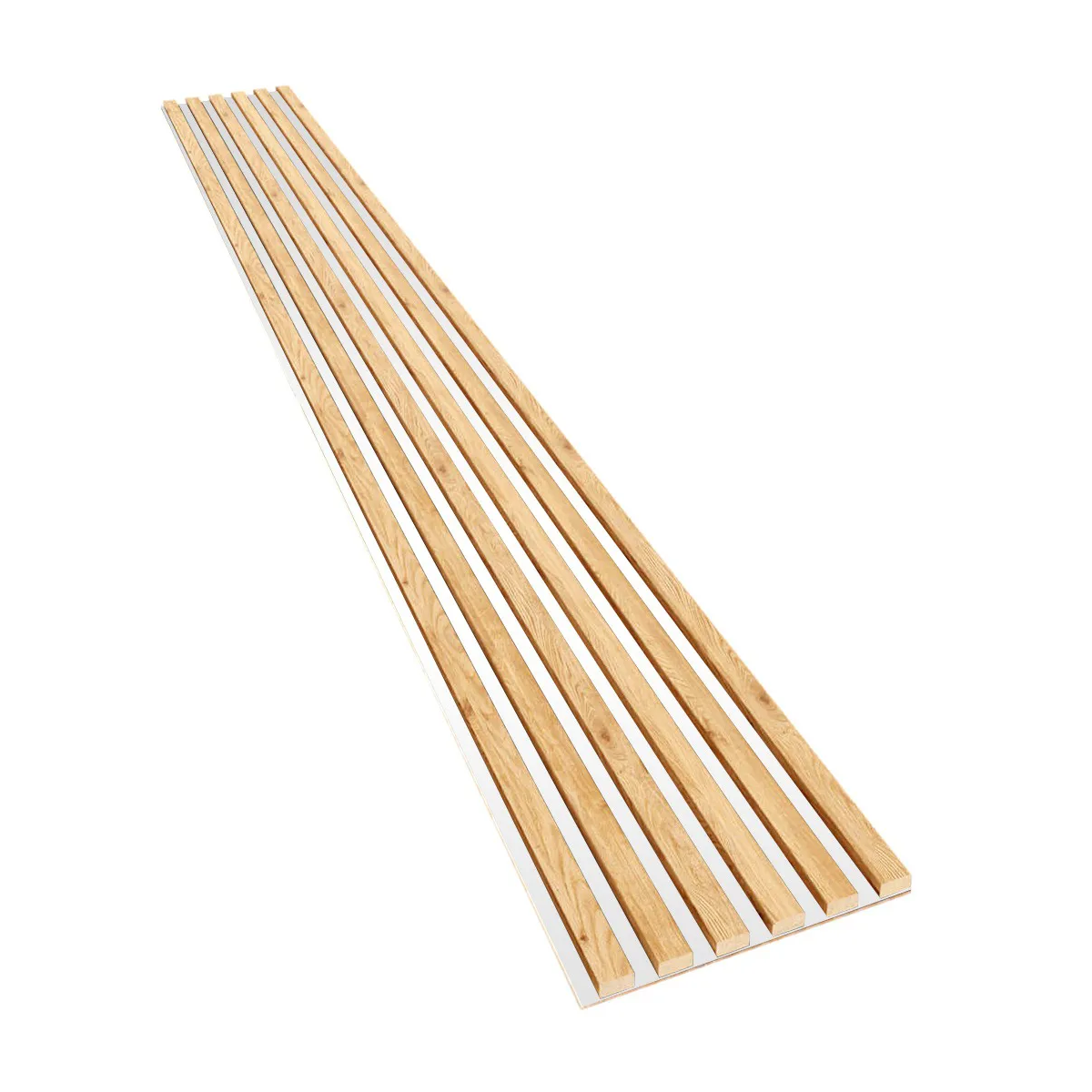 Acoustic wall panels are a fashionable and practical way to decorate interiors! Thanks to the 4mm thick oak HDF board and vertical laths, the panels perfectly absorb sound waves eliminating reverberation in the room. In addition to acoustic functions, the panels also serve as a fashionable and modern decoration for walls and ceilings in any interior. The wall panels come in 15 different decors mounted on an oak, black or white panel made of durable and lightweight HDF board. Check out the available fin variant on the oak panel!
