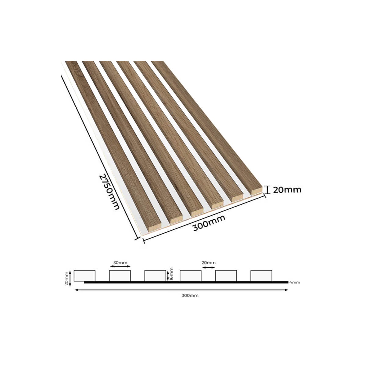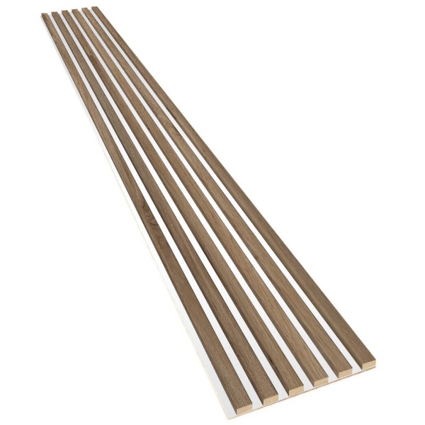 Acoustic wall panels are a fashionable and practical way to decorate your interior! Thanks to 3mm HDF board and vertical slats, the panels perfectly absorb sound waves, eliminating reverberation in the room. In addition to their acoustic function, wooden panels also serve as a fashionable and modern decoration for walls and ceilings in any interior. The acoustic slat panels come in several different decors mounted on a black HDF panel made of durable, lightweight board. Check out the available variations!