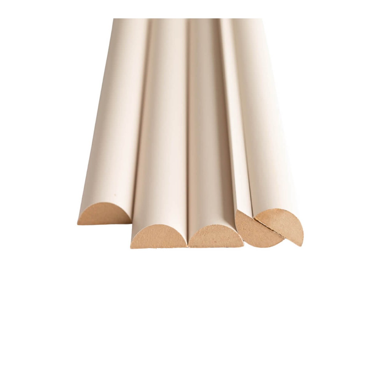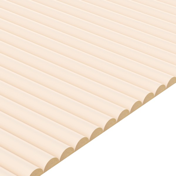 MDF half-round wall moldings are stucco moldings with acoustic properties. In addition to their acoustic properties, the moldings are a trendy and modern decoration for walls and ceilings. They are available in 7 different decors. The unique shape of the half-round moldings creates an optical light refraction effect. The moldings are made of MDF and laminated on the oval side.