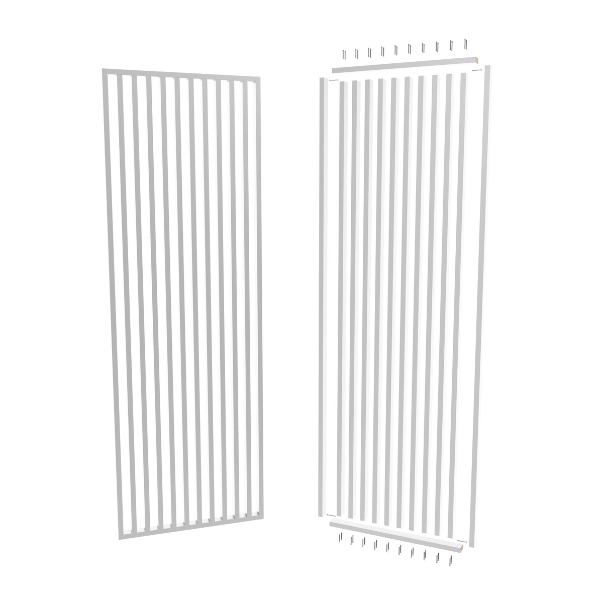 The set of slats at a 55-degree angle is a complete solution for creating a unique arrangement. The set includes ready-to-install vertical and horizontal slats, properly prepared for slanted installation, necessary mounting elements, and clear instructions. This makes installation quick and intuitive, even for people without prior experience.